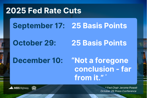 With the Fed implementing its second rate cut of the year, the big question is whether more easing could follow in December. Also, what’s the latest on home prices and contracts? Here’s what you need to know.